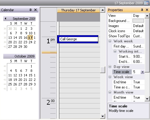 Properties Bar – by default is docked along the right edge of the Calendar View. This view lets you quickly change settings for displaying Planner (for example, switch the Planer to Daily, Weekly or Monthly view)