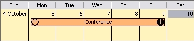 You can schedule events lasting several days. For example, you may want to schedule a conference which lasts 5 days from Monday to Friday.