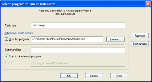 To disable running a program, click Remove in the Select program to run at task alarm dialog.