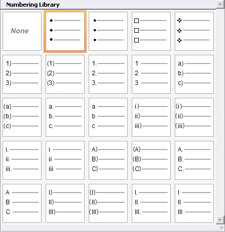 2. Choose Menu Ribbon | Edit | Numbering. Drop-down Numbering Library appears.