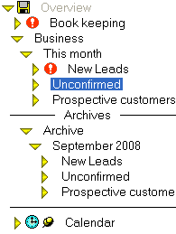 Items showing a triangle icon contain information just like paper folders. You can expand or collapse an item showing a triangle icon to show or hide the item’s contents or sub items just as you would open or close a paper folder.