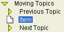 2. While holding down the ALT key, press the UP, DOWN, LEFT, or RIGHT ARROW keys to move the item up or down one space at a time or left or right. To move an item to the top or bottom of a Topic, press ALT + HOME or ALT + END.