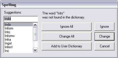 - Click the Change button to correct the misspelled word or click the Change All button to correct all occurrences of the misspelled word.