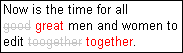 You can edit documents as a team, tracking individual changes and recommendations by color. The originator of the document then has the option of accepting or rejecting markup suggestions. For example, you might want to send an advertisement to your co-workers for their edits and suggestions. You would ask each of them to mark their changes with the tracking feature enabled and to send the text back to you.