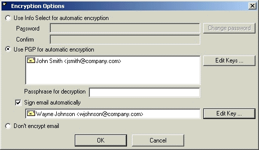 Now Info Select can automatically encrypt and decrypt e-mail messages using PGP.