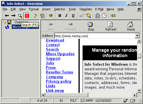 Info Select 8 now allows searching in Web Page items, HTML e-mail messages, File Managers and File Attachments.
