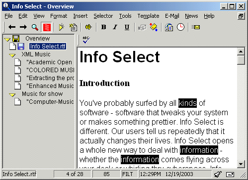 Highlighting of text You can highlight text in Info Select 8 Notes with different colors.